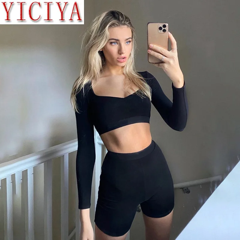 Two Piece Set Women Sexy Crop Top Biker Shorts Bodycon Streetwear Summer Clothes Club Outfit Tracksuit Lounge Festival Clothing Short Sets Aliexpress