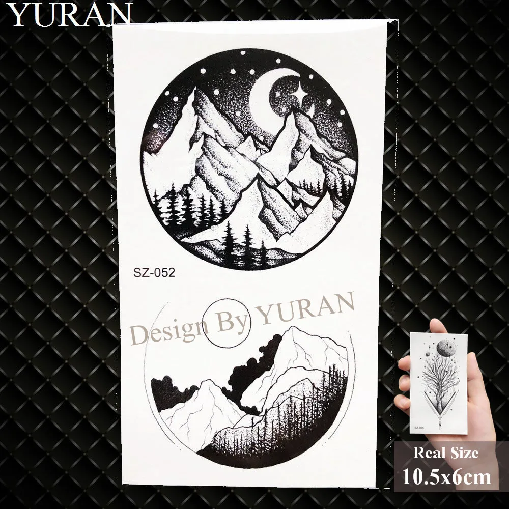Yuran Schwarz Mountain River Geometrische Tattoo Aufkleber Frauen Korper Arm Mond Temporare Tattoo Manner Ankle Wolf Runde Gefalschte Tatoo 3d Aliexpress Mobile